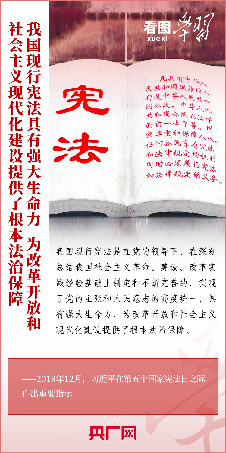 憲法是國家的根本法,是黨和人民意志的集中體現。尊崇憲法、學習憲法、遵守憲法、維護憲法、運用憲法,是每個公民的義務。在第十個國家憲法日(12月4日)來臨之際,《看圖學習》欄目為您梳理習近平總書記關于憲法的重要論述。一起來學習!