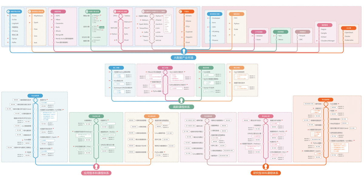 大數(shù)據(jù)專業(yè)課程:根據(jù)高校需求設(shè)置本科(應(yīng)用型)、本科(研究型)、高職3套課程體系,10多個(gè)行業(yè)項(xiàng)目案例,7套教材及實(shí)驗(yàn)手冊(cè),9類教學(xué)資源(視頻、鏡像、手冊(cè)、試題庫(kù)等)